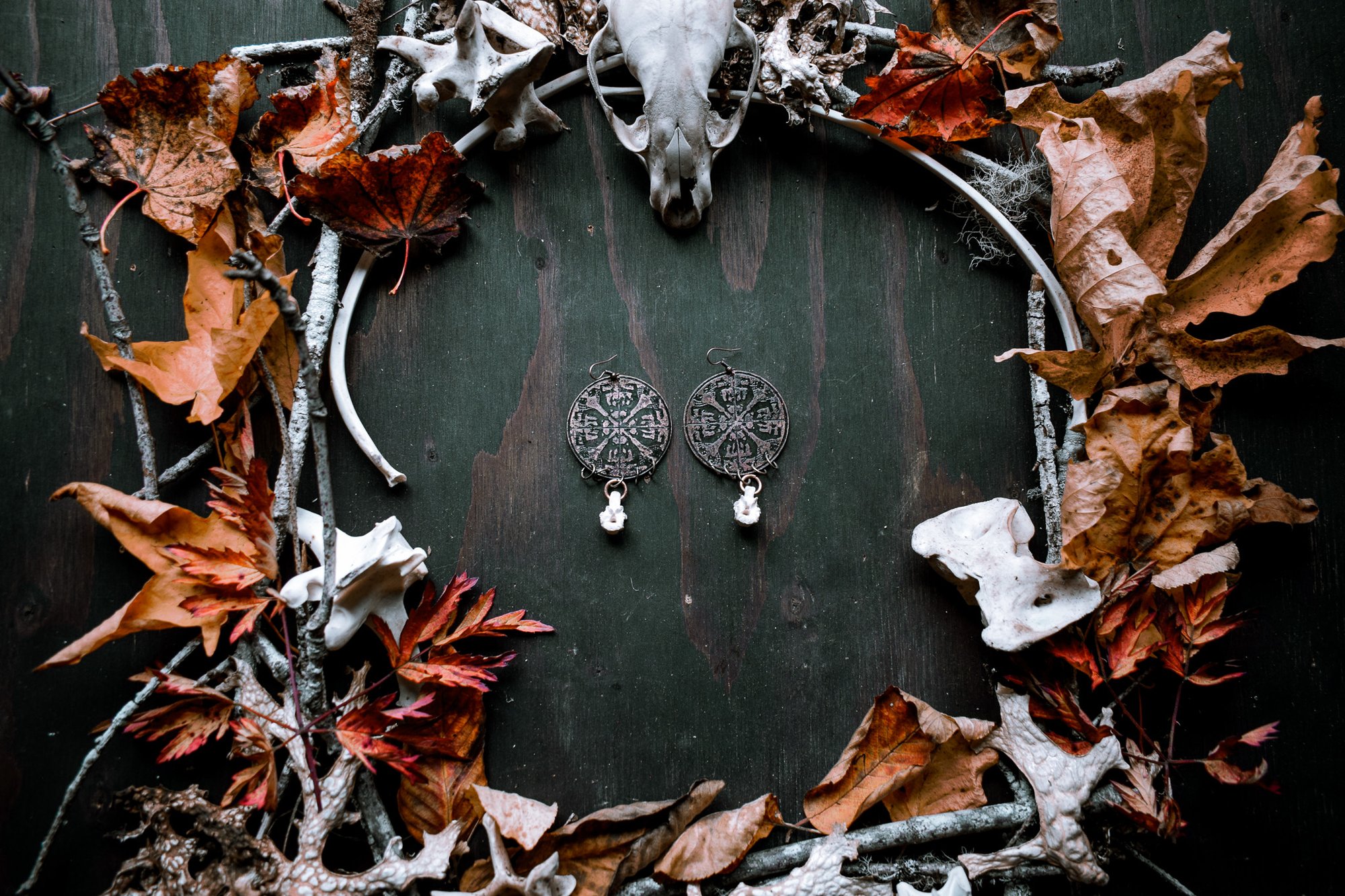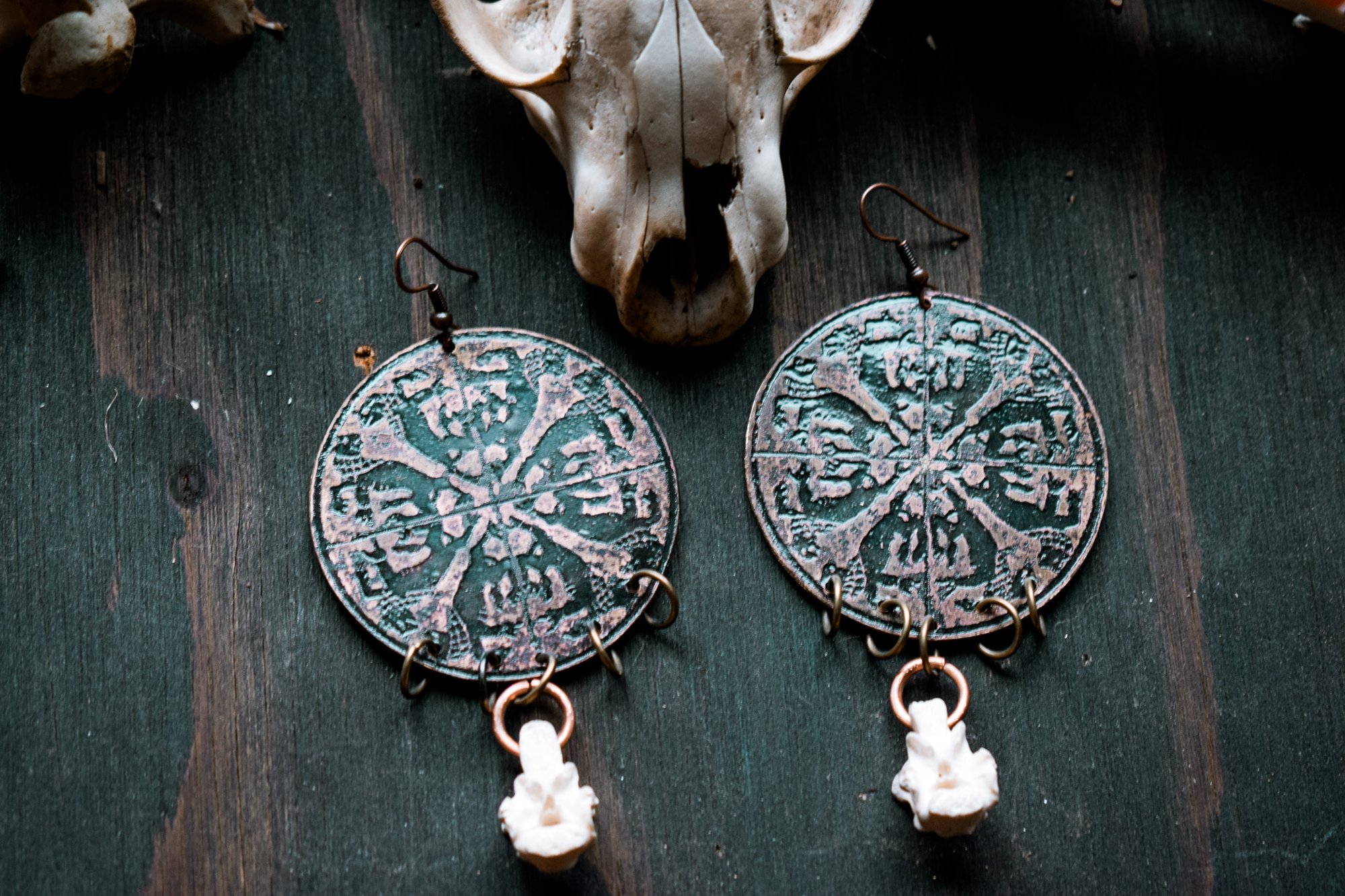 handmade etched brass and bone earrings