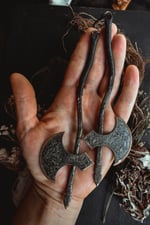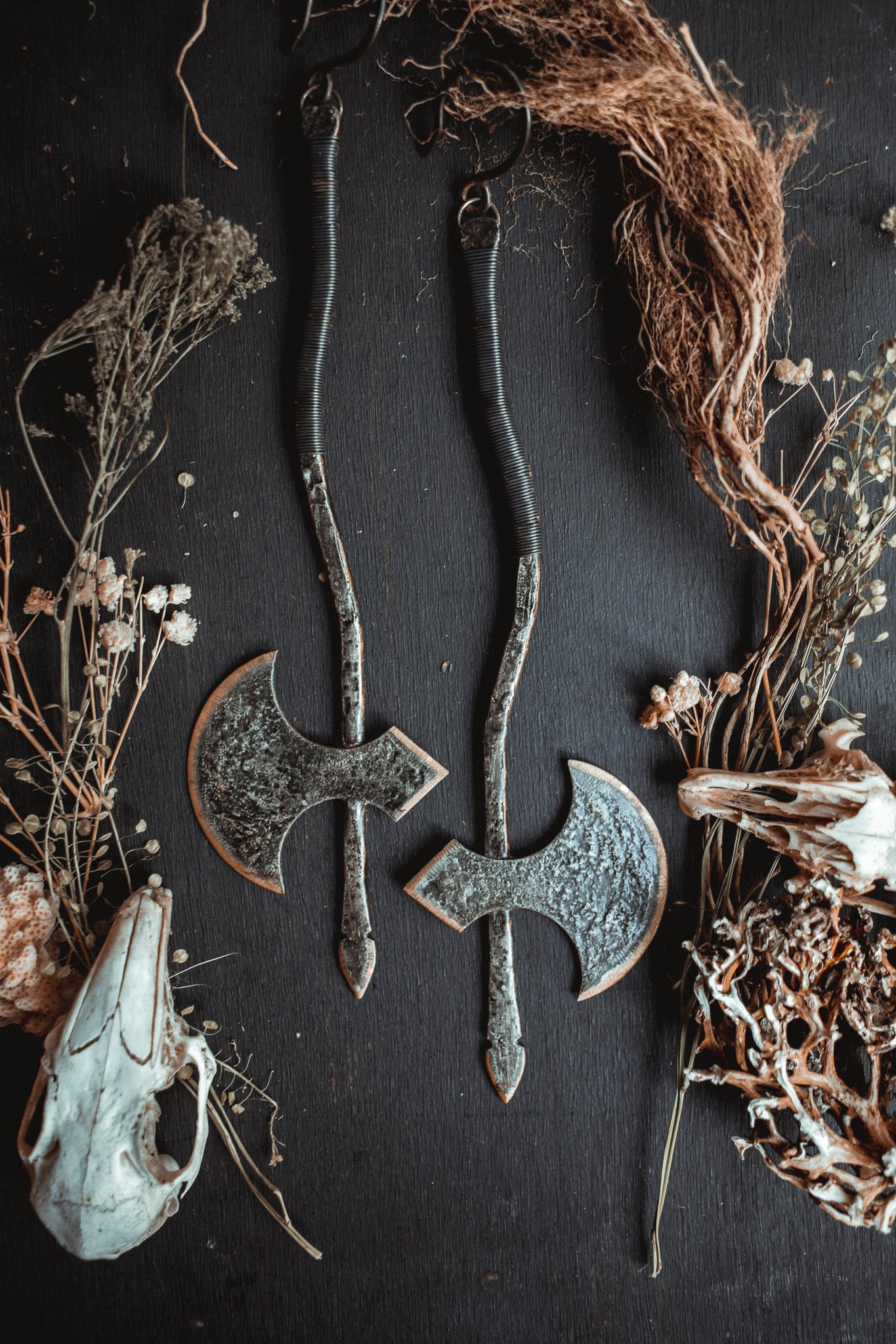 A pair of ear hangers created with sawed brass, hammered wire and silver.