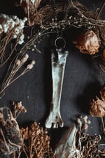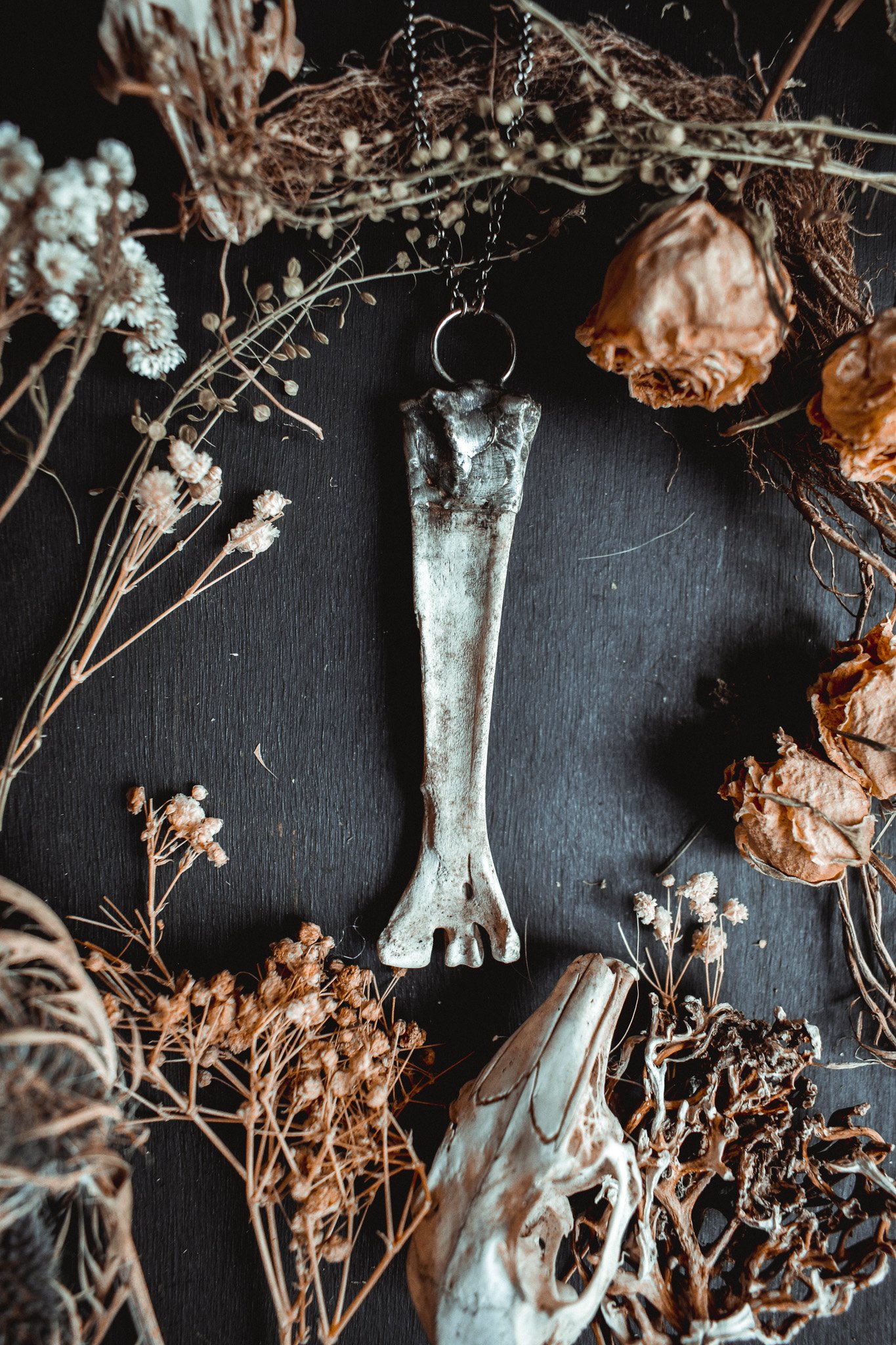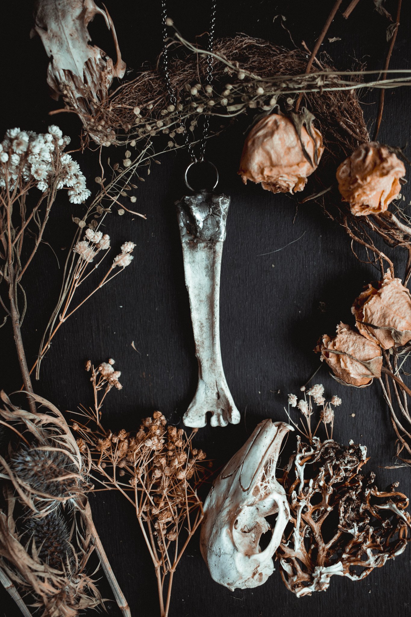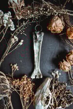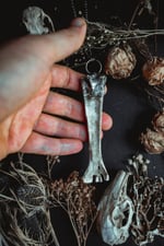 A unisex necklace created with a salvaged bone that has been capped in silver.