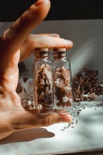 A glass vial filled with misc bone fragments.