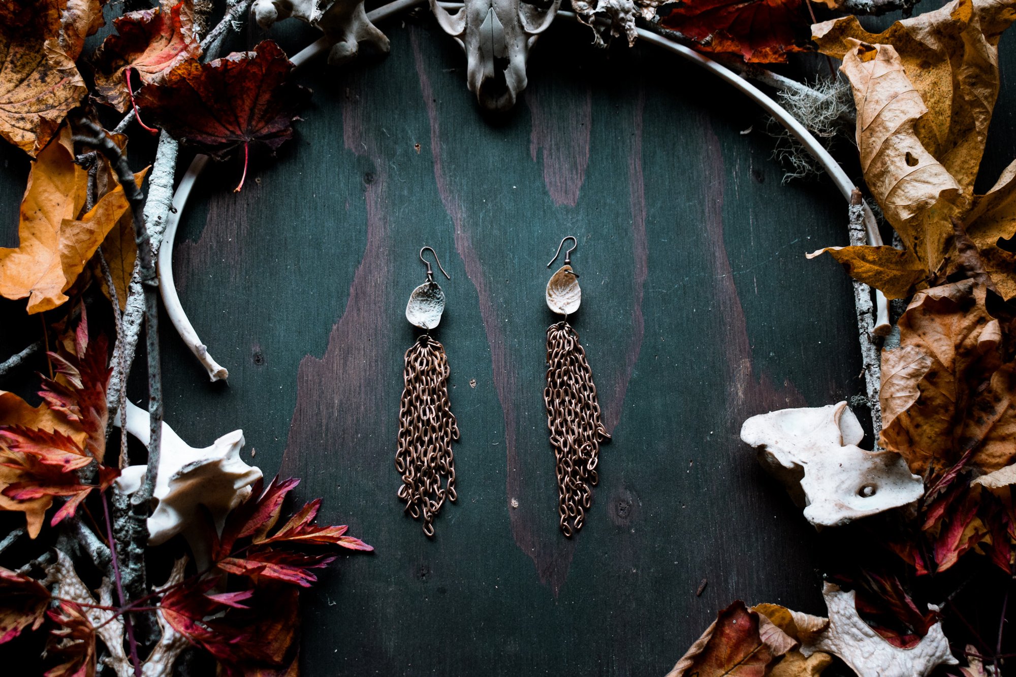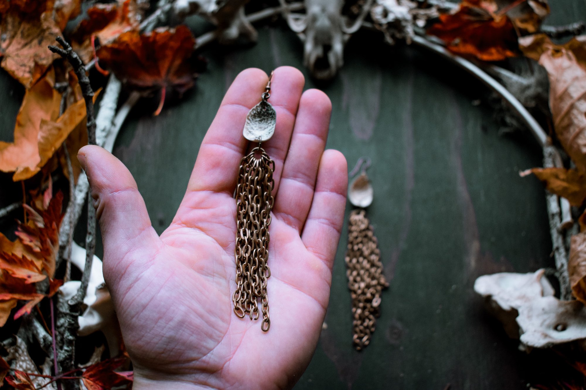 handmade bone and chain earrings