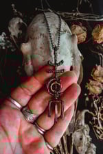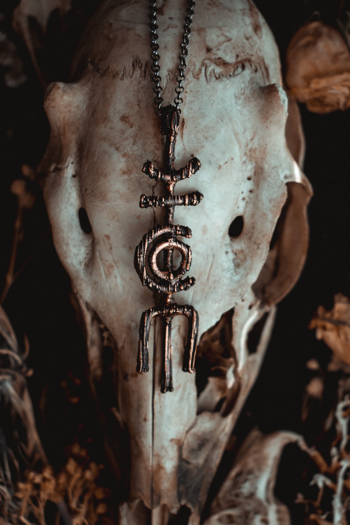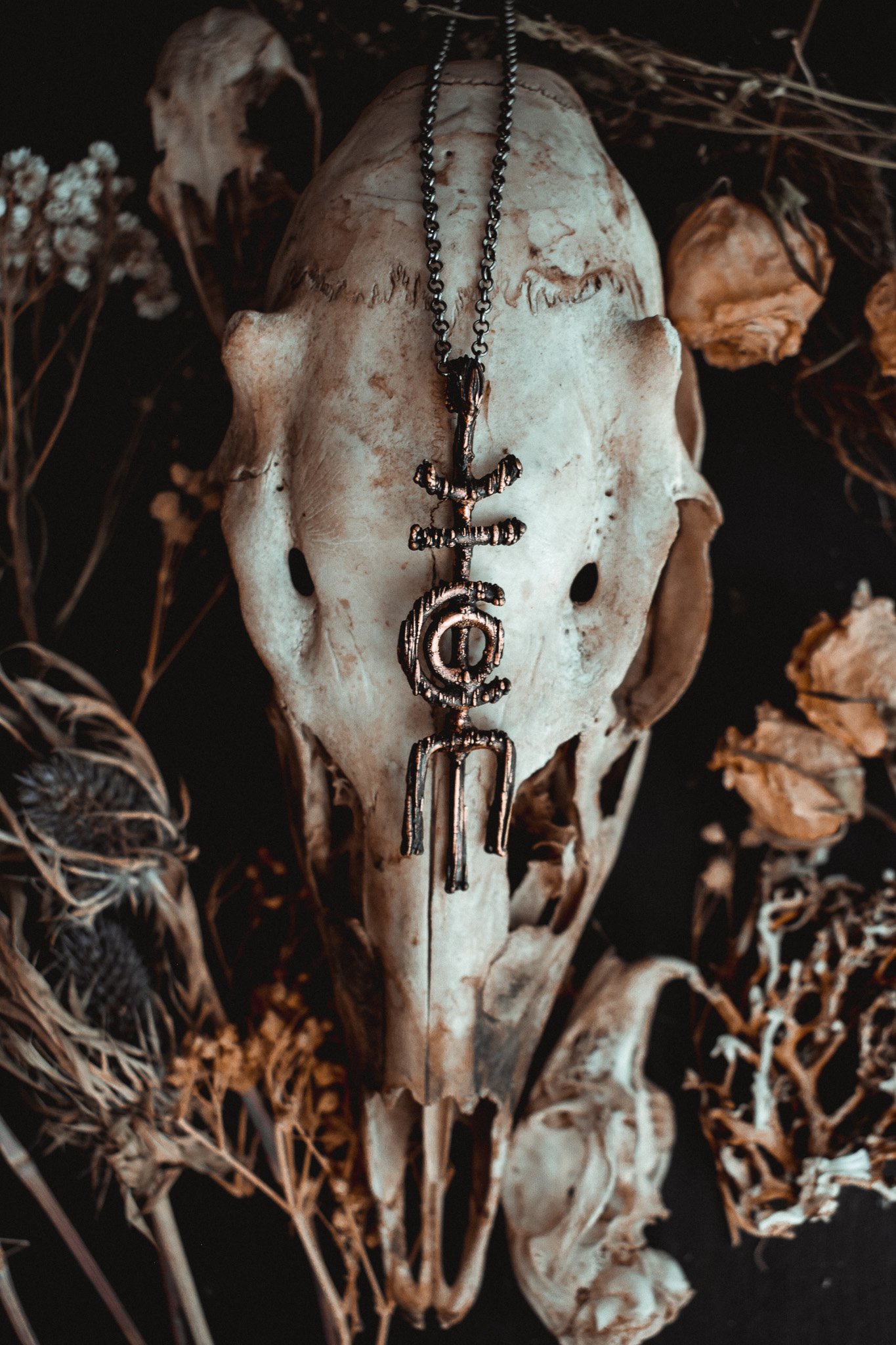 A necklace created with copper wire that has been electroformed