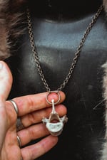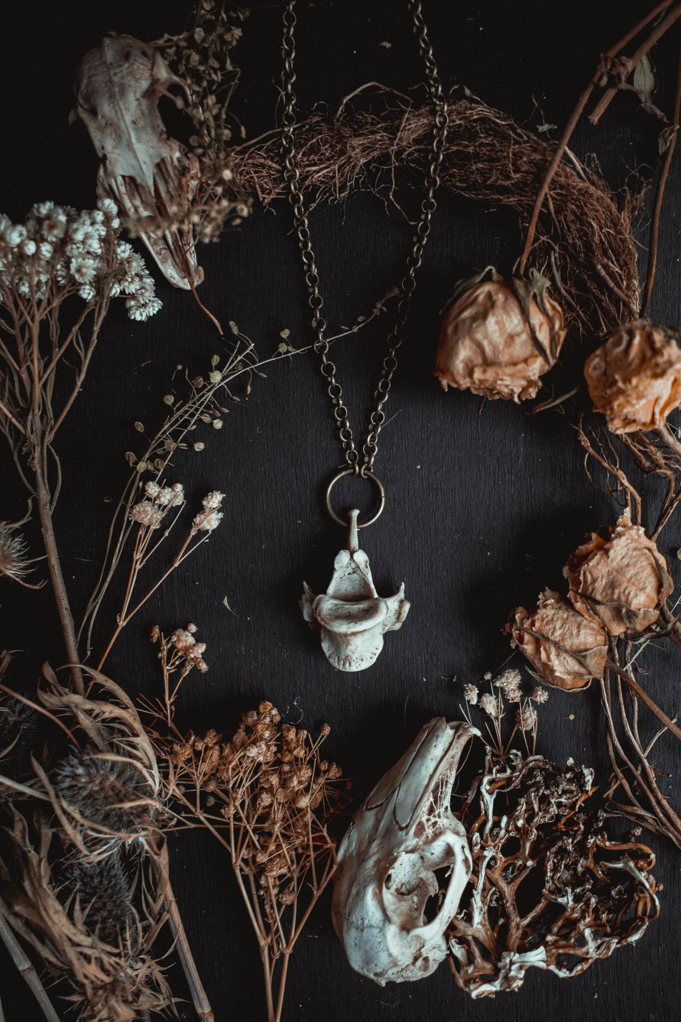 A necklace created with brass and a lovely, salvaged raccoon vertebra