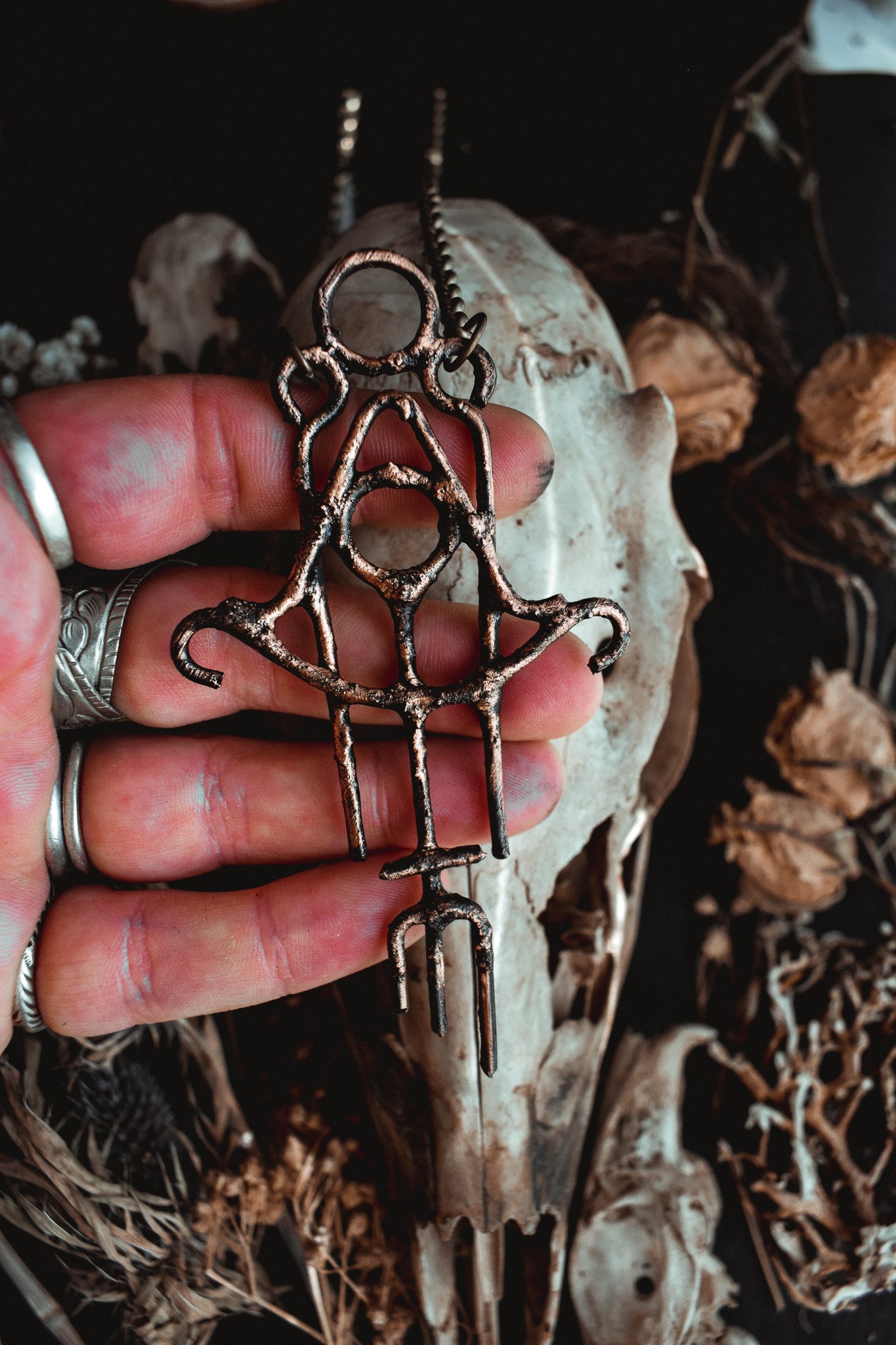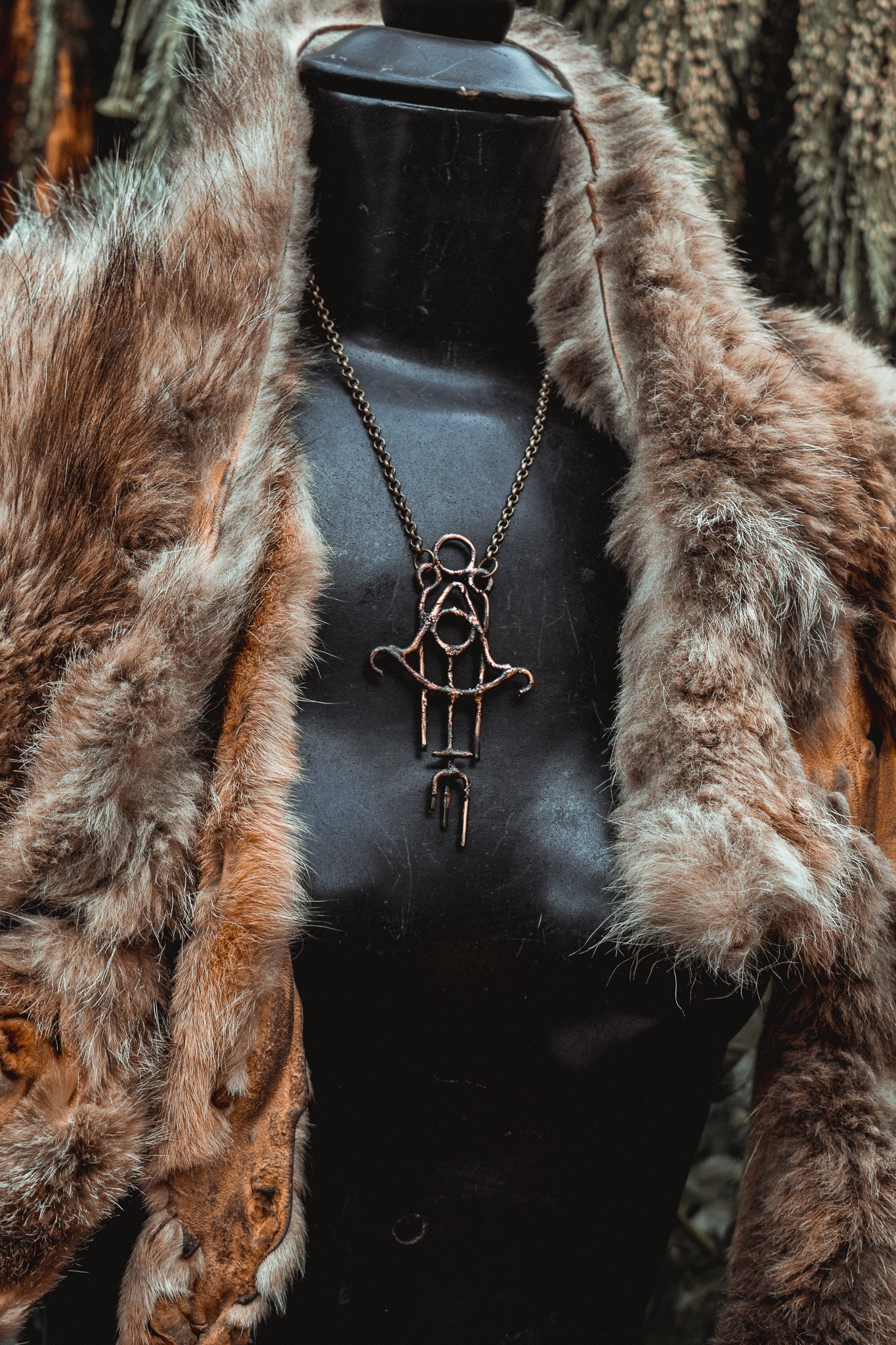 A necklace created with electroformed copper.